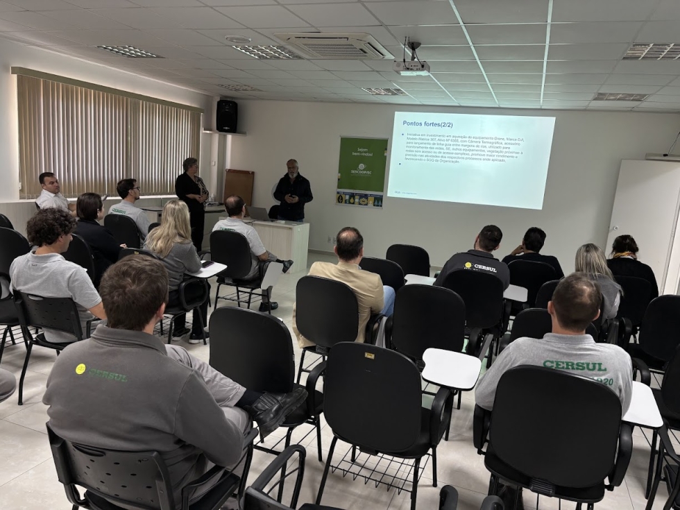 Também foi destacado a implantação de novas tecnologias, como o projeto piloto de telemedição, e o uso de drone com câmera termográfica para monitoramento de redes e áreas de difícil acesso, promovendo maior segurança e precisão nas operações. Ainda o comprometimento da equipe da Cersul com o sistema de gestão, refletindo a busca constante pela conformidade e aprimoramento dos processos.